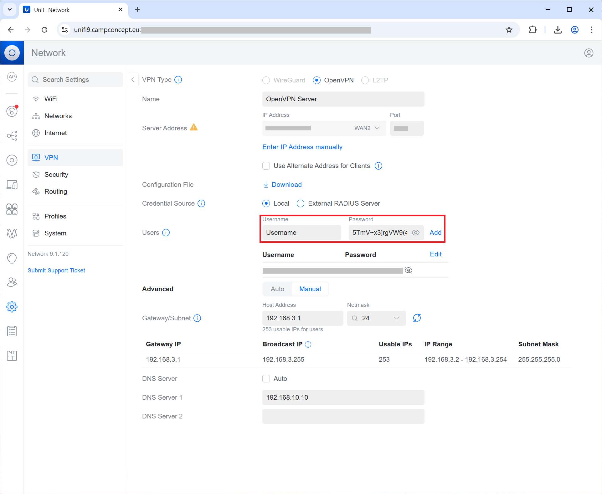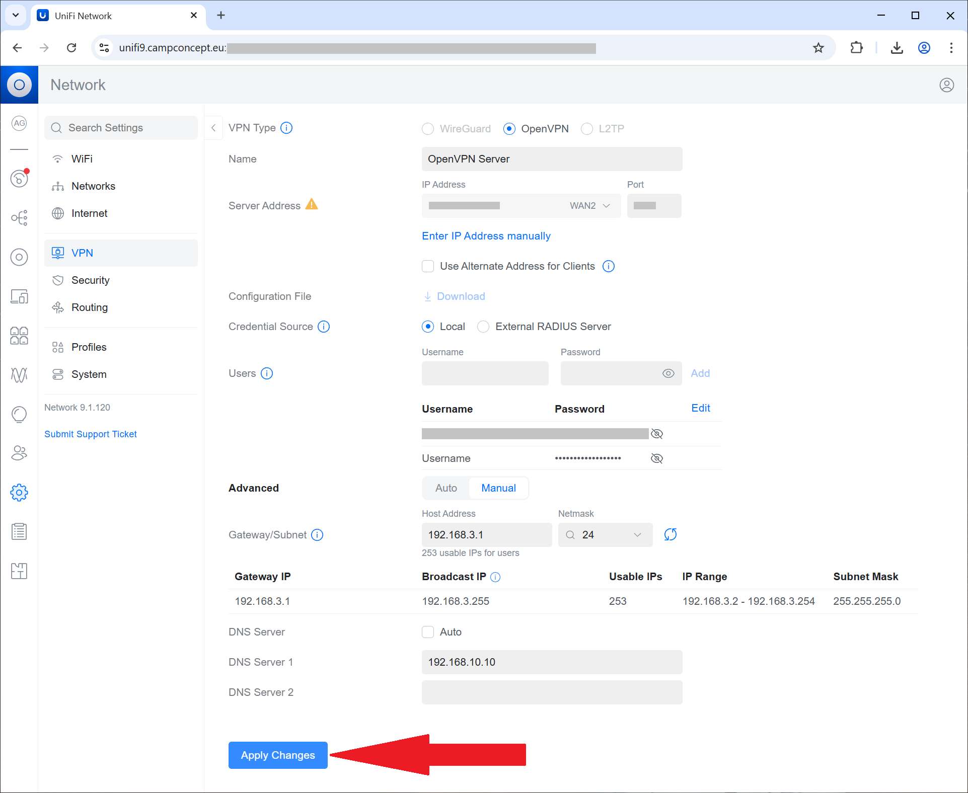 Diese Anleitung gilt ausschließlich für die UniFi Network Version 9 in Verbindung mit OpenVPN. Andere VPN-Typen (z. B. WireGuard oder L2TP) erfordern abweichende Schritte.