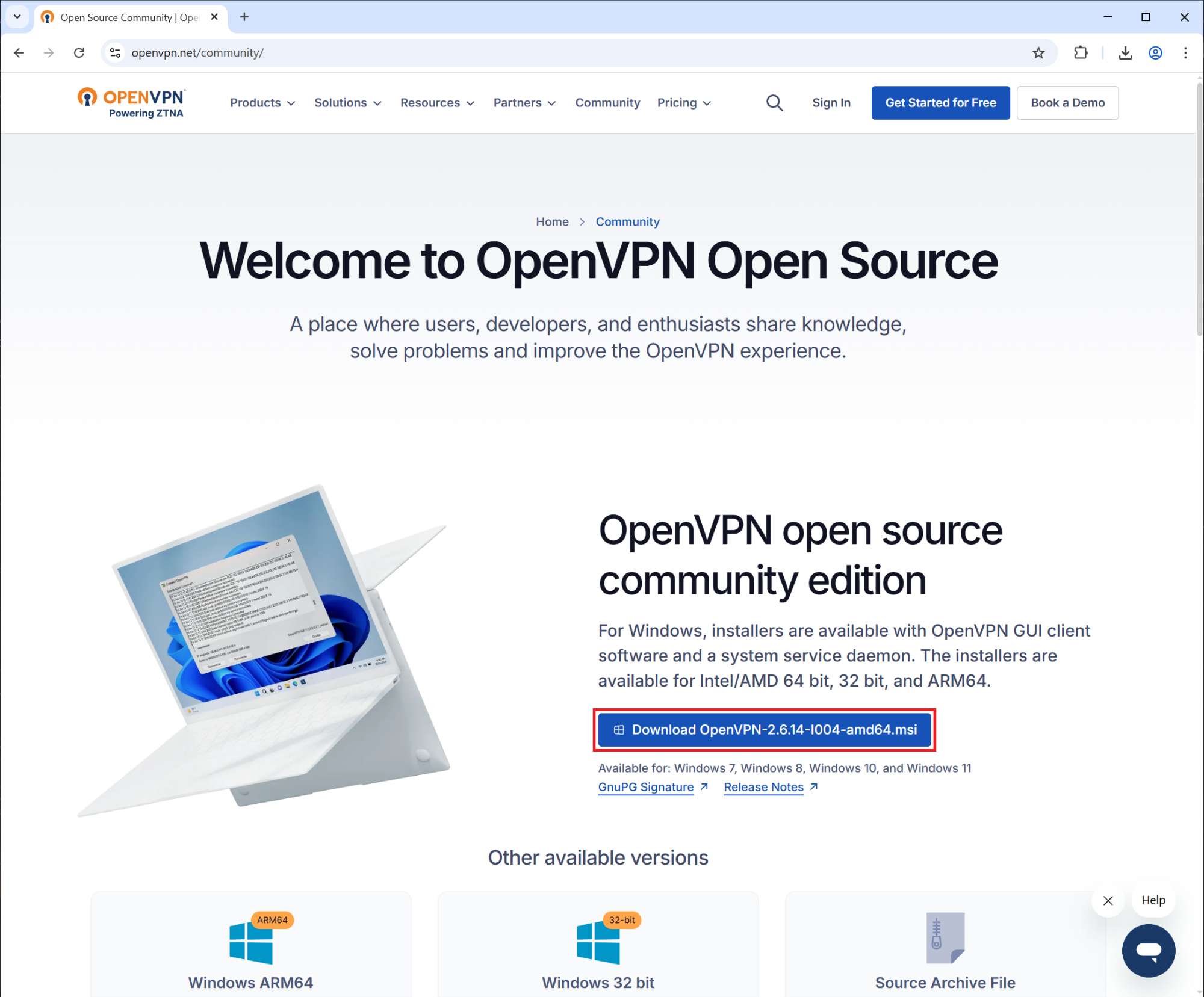 5. OpenVPN-Client installieren. Laden Sie den aktuellen OpenVPN-Client von der offiziellen Webseite herunter und installieren Sie ihn.